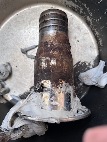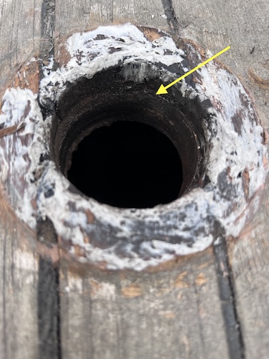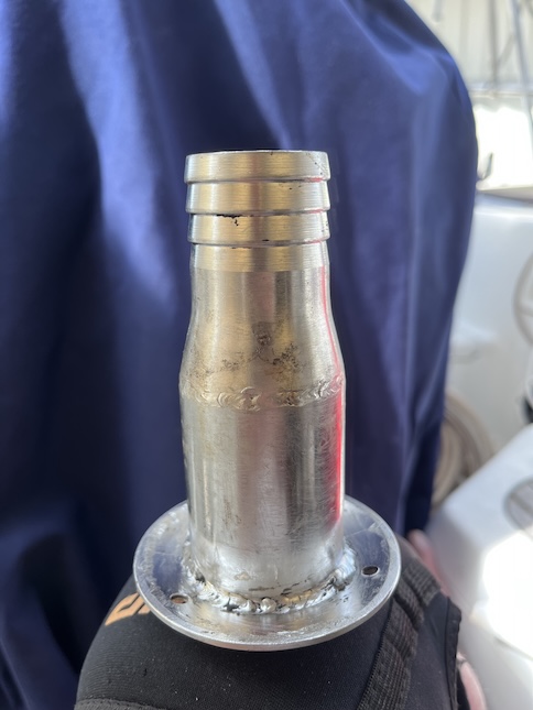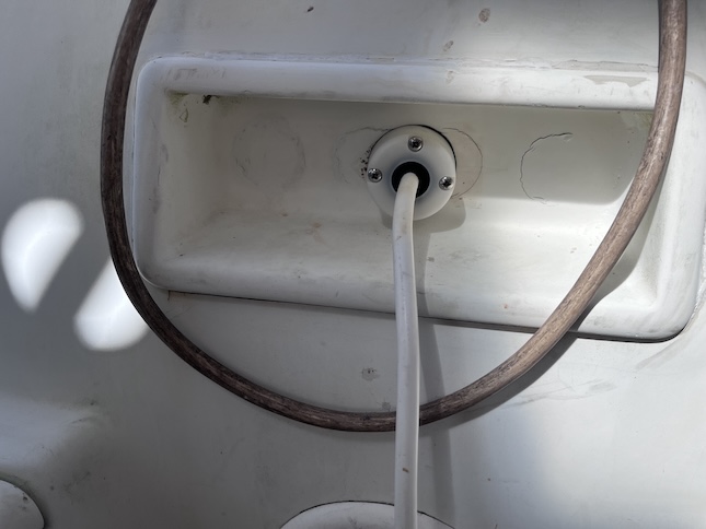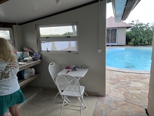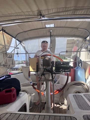 More Photos of Yard Work I mentioned in the Blog that I had installed a cable clam to weatherproof the passing of the yard AC to below the cockpit and attaching to our AC charger. This is the cable clam and wire. ![]() The Lazy Bag stores and protects the huge main sail. The upper and opening edges of the bag are held rigidly by fiberglass poles. The 4 shorter pole sections are locked together by aluminum tubes. Through the many years ours have gotten lost or gone overboard so we had a local Anchorage machine shop fabricate these. They fit perfectly! Our friend, Richard, in his natural habitat, his shope made from a connex. He's Canadian but applying for US citizenship. Lovely Conni is testing our ship's wheel, after a 2-year lapse. Lovley Conni illustrates the narrow space between Wings at right and the adjoining vessel. I must keep my chest off the ladder in ascent or descent. This is the bungalow kitchen. It's completley open air. There's no door! It's nice but unpleasant in bad weather. When I said, "no door", I meant NO DOOR! When the wind blows from that direction, we're pummeled. A kitchen still life with treasures from the new Carrefour (all but one). At right is a bottle of Bombay Sapphire for G&Ts purchased at the Duty Free store. Left is a bag of black, Greek olives, then canned tuna, Italian pesto (very good), Conni's can of Cassoulet de Canard (she's an addict), and last, a bottle of "we can't get it in the US" Amer Picon, prime ingredient for several cocktails. This is the hole in the deck through which the starboard fuel tank filler fitting went. It was a job to remove the fitting to expose this. The yellow arrow, if you can see it, shows where the teak decking ends and the fiberglass deck begins. We think, we hope, that this is the source of the major leak. We lined the sides of the hole with good caulk and on the sides of the fitting, to stop the leak. This is the fuel fitting that we've mentioned. After removing it, we see the badly stained side which is not on the other faces of the fitting. This is the side that leaked! The gooey grey stuff is butyl tape, very difficult to remove. After an hour of using acetone, a steel wire brush, a brass brush on my drill, and a putty knife, the fitting is clean enough to start reassembly. For the grand opening of the new Carrefour store in Uturoa, they pulled out the stops with lovely decorations everywhere. Lovely Conni drools on the glass doors of the meat aisle. You name it, they had it. |