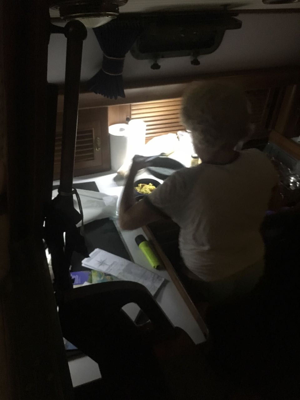 Lovely Conni preparing the evening meal. Unlike being at home where Bill does the majority of cooking, Conni cooks and Bill washes dishes.
