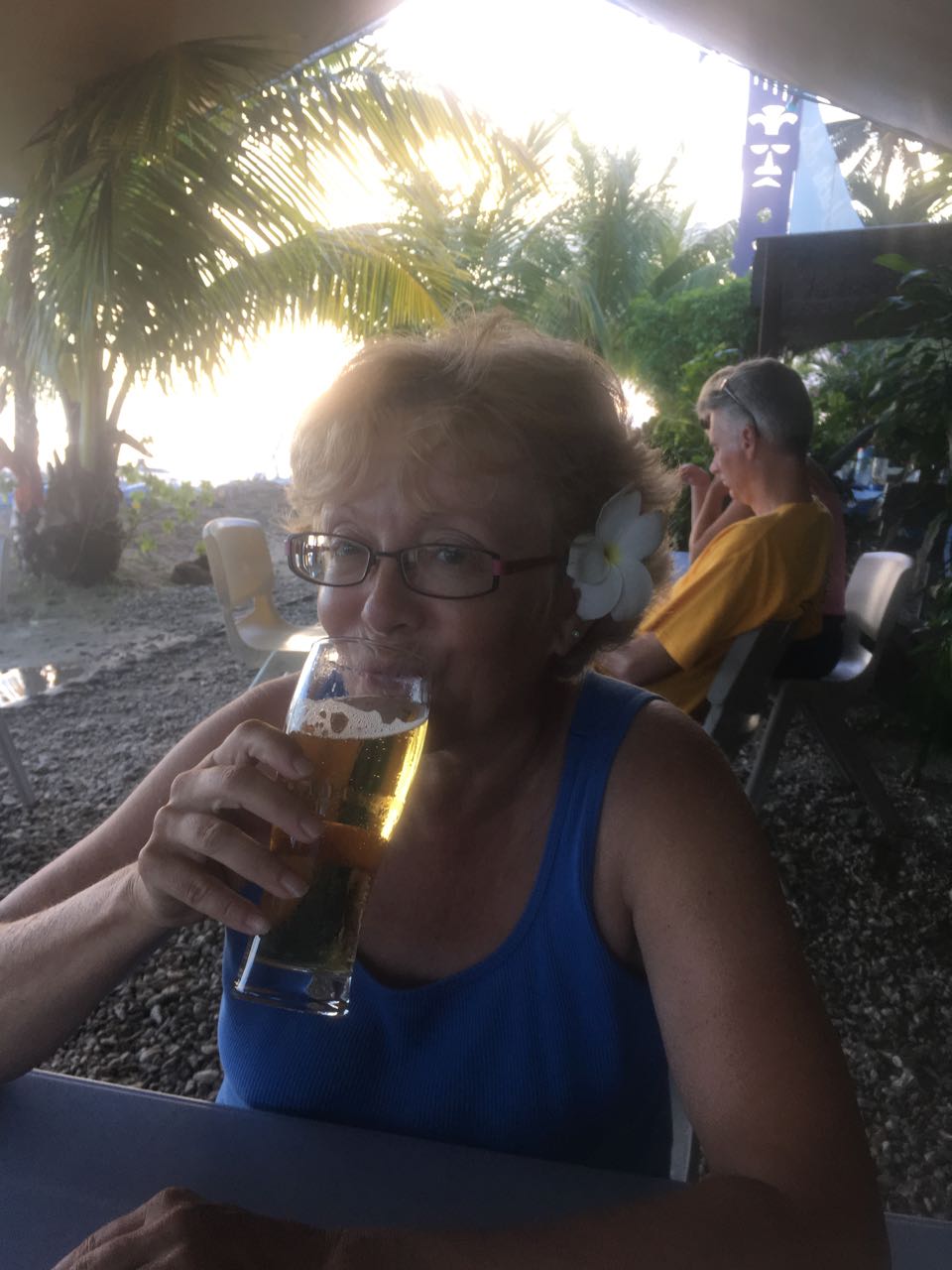 Lovely Conni enjoys a frosty Hinano draft. I found the flower and she wore it.