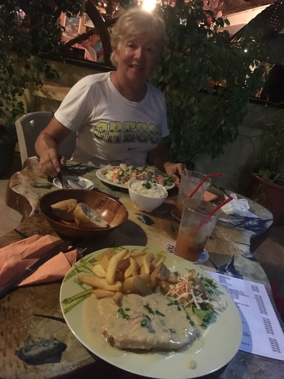 Our first night's dinner was poisson cru, the official dish of French Polynesia, and grilled marlin in vanilla sauce for me.