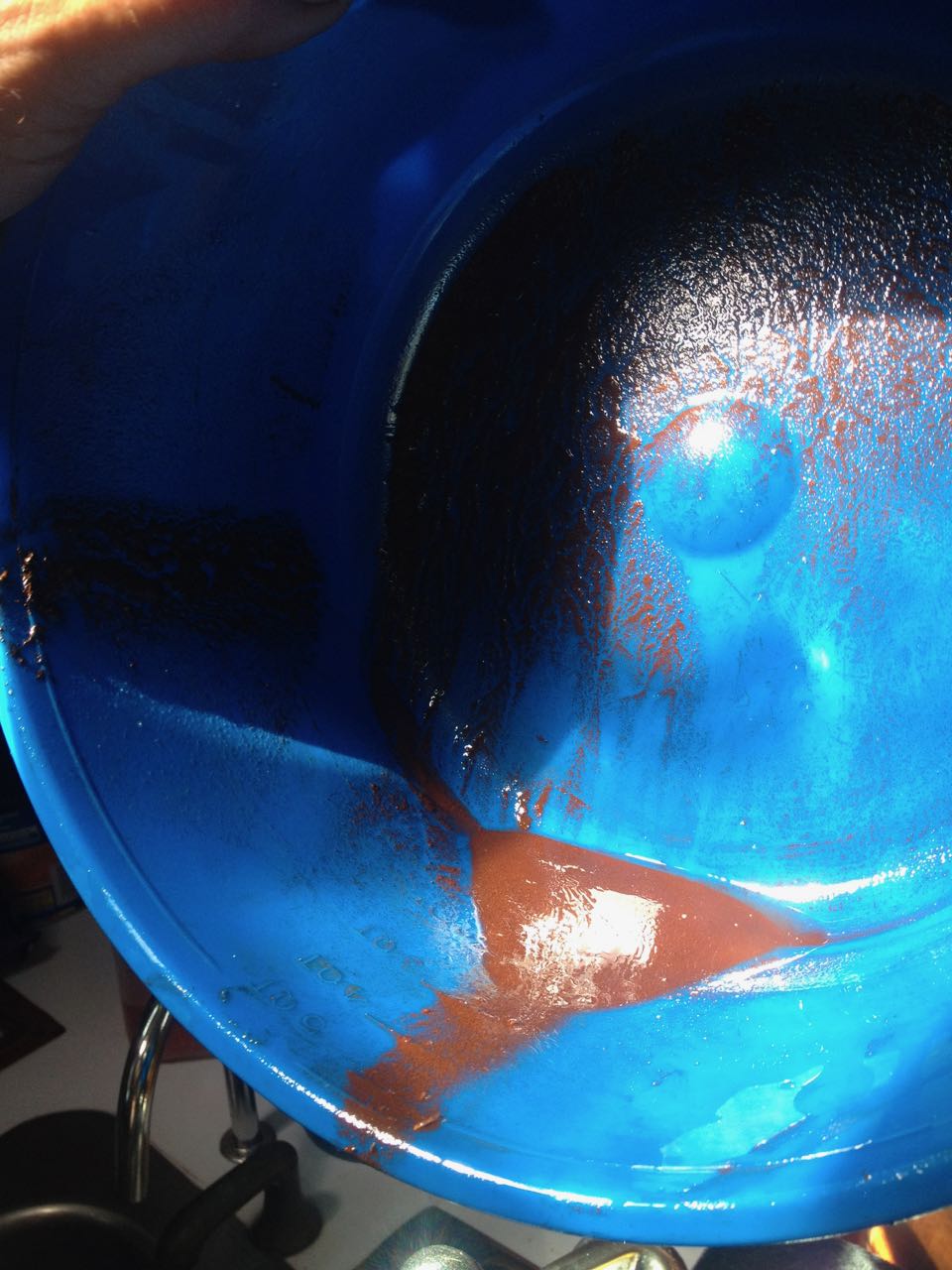 The process of draining the port fuel tank requires that I lie on the counter with my head in a cupboard and my right arm dangling in the tank. It's most unpleasant and I reel from the fumes. This is the fuel from the port tank that I recovered and discarded.