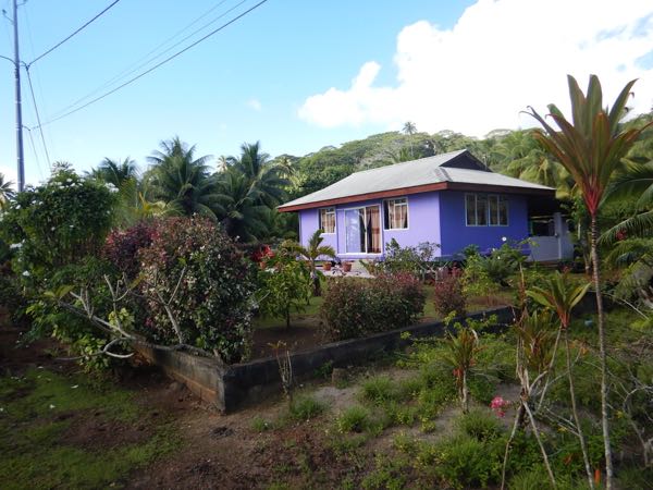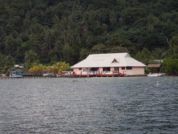 At the head of Ha'amene Bay is Hotel Hibiscus, built and operated by Leo and his Tahitian wife, Lolita. His roof-top sign reads, "Hibiscus", then, "VHF68", referring to the way to reach him by radio.