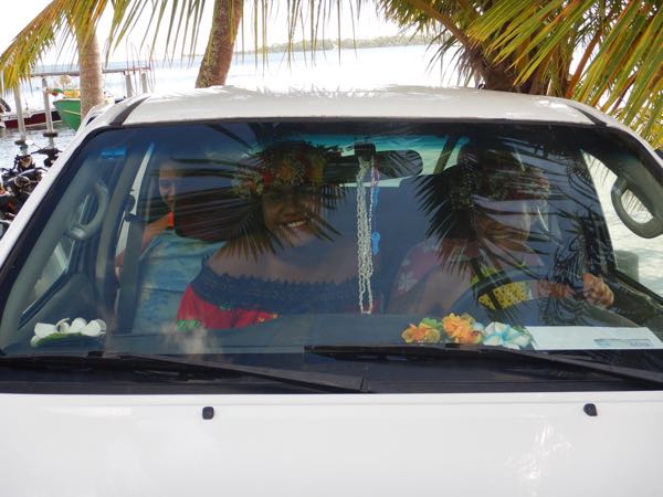 On one of our last days on Taha'a, we motored to shore and enjoyed a walk along the coastal road. We stumbled upon a local wedding, and these were the decorated cars, just as in the US.