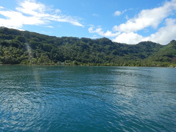 Tapuamu Bay is one of our favorites. We've spent many days here waiting out storms. In the distance is the wonderful Rhumerie (rum distillery), Pari Pari.
