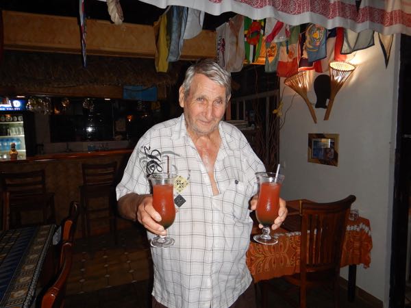 We love Hotel Hibiscus and we adore Leo! He's befriended us and we're always glad to see him. We spent a few hours with beer and his Wifi and made arrangements for dinner. Here, lovely Conni awaits her cocktail and meal. We knew that we were on the home stretch so she got dolled up for the dinghy ride from the boat.