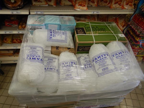 On to Raiatea and the Champion grocery store. Cleverly, they packed frozen food from New Zealand in bagged ice from Tahiti.