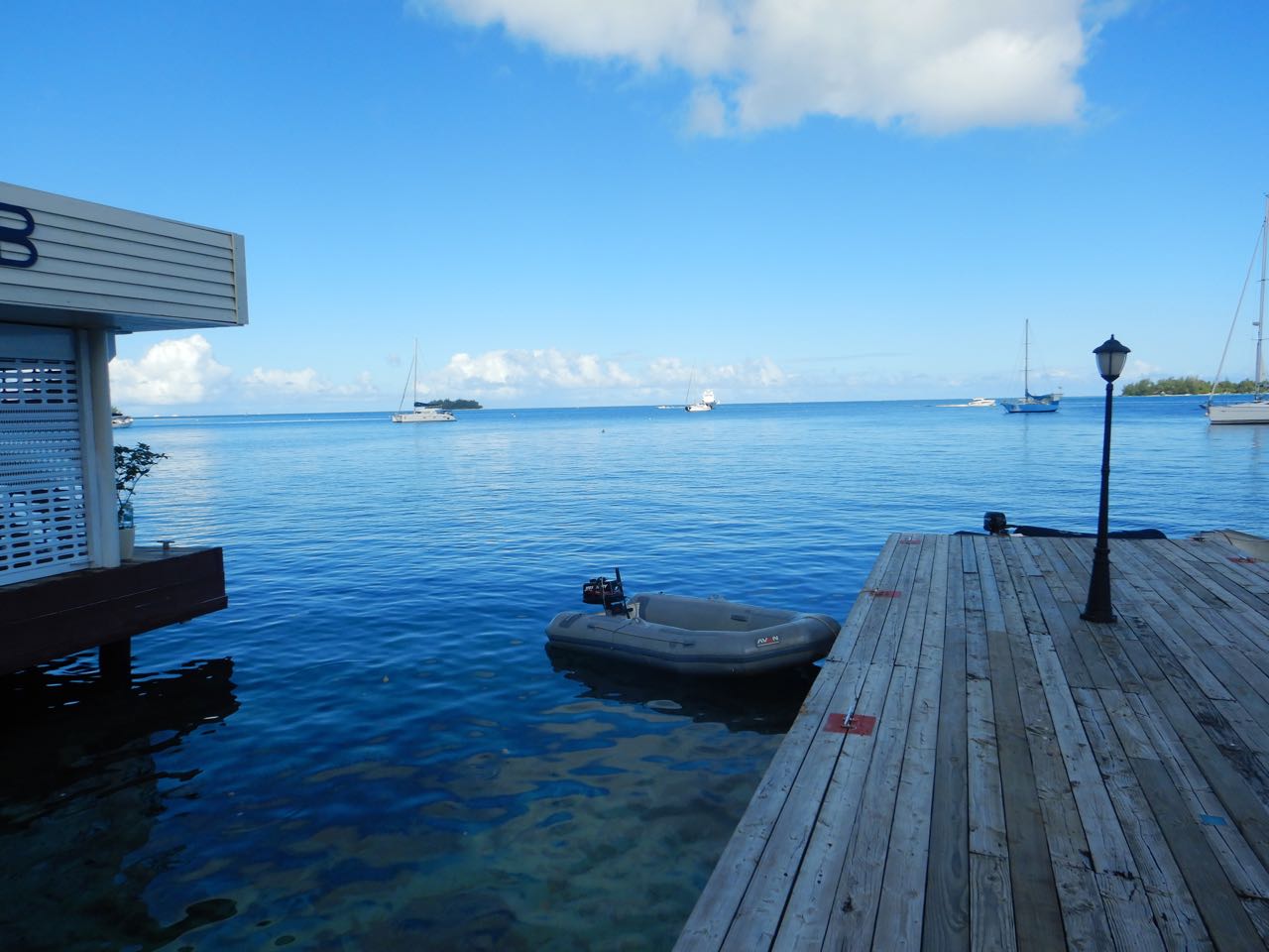 Bora Bora, Loveliest Island After sitting at anchor for 5 days in Tapuamu, we longed for a change of scenery, and we chose Bora Bora. As I've mentioned, many feel that it's the most beautiful island in the world, and there's no doubt that it's beautiful. ![]() Their dinghy has a dinghy! Perhaps they have a visitor, but it is a funny sight. The lovely motor yacht is about 100-feet long and has a pleasing design. She's on her anchor in one of the few designated anchor-only locations. ![]() This is the Bora Bora Yacht Club. Expect no blue blazers nor club commodore. Mostly, it's a highly rated restaurant, but it also caters to cruisers, offering showers, Wifi, and laundry services. ![]() Our dinghy, tied to the Bora Bora Yacht Club dock. It's quite a view! Out in center is a large freighter negotiating the complex entrance to the lagoon. We're looking South in this photo. ![]() And here is Wings, tugging on her mooring. As you can see, we're looking South, here, and the tiny point of land in that direction provides unexpected shelter. ![]() Lovely Conni sits in her skivvies and reads during the hot mornings. Sometimes we can work, often it's too hot at 0900 and we just hide until later afternoon. ![]() This is Vaitape, pronounced, "Vi-a-top-e", and the main village on the island. The harbor is tiny. The stern protruding from the left is from the ferry that transports people to and from the motu that has the airport on it. It's an old WW2 airport, carved from the coral motu by SeaBees and refurbished as Bora Bora became a tourist destination. ![]() Lovely Conni strolls along the dock in Viatape. We were both taken by the beautiful, and beautifully maintained motor boat. ![]() She looks like a pre-war yacht design to me, but she could be a replica. She's beautifully maintained, as you can see. Our guess was that she delivered guests to a posh resort. ![]() Conni is strolling toward the Aloe Cafe, where we enjoyed some iced drinks and Internet. This is downtown Viatape. Just look at that mountain! ![]() Was this worth posting? Stuff like this points out the cultural differences, I guess, and always attracts my eye. Auto Hot Dogs? Are they selling both? ![]() The main store in town is Chin Lee's. It seems that every Polynesia town has an Chinese grocer who's doing well. This is why we stay here. What a