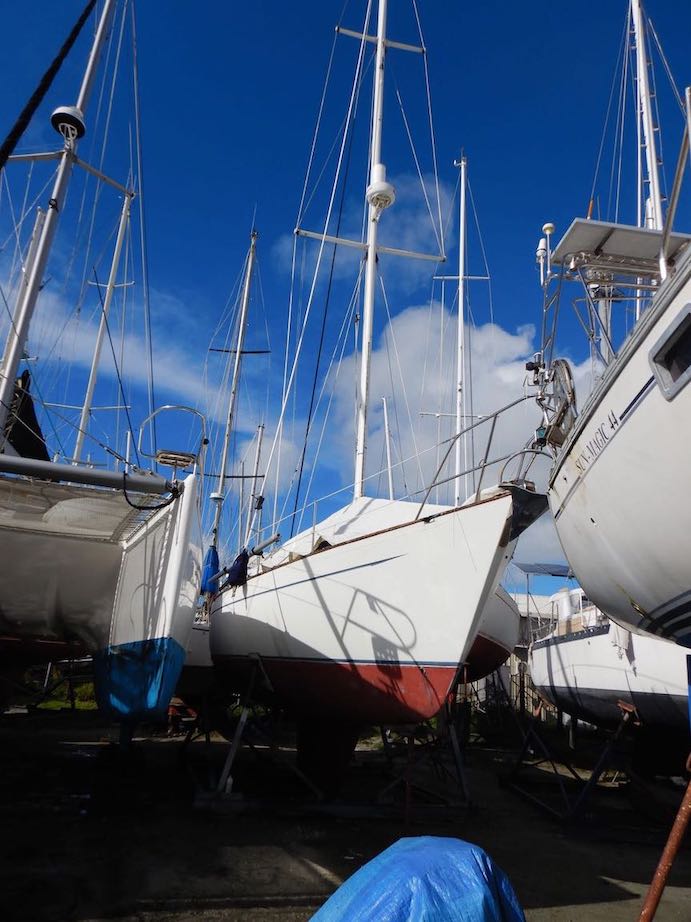 Wings! She's been sitting patiently in her cradle for 9 months. When we went below, she was much drier than she's been, a tribute to Conni's efforts with a caulk gun last year.