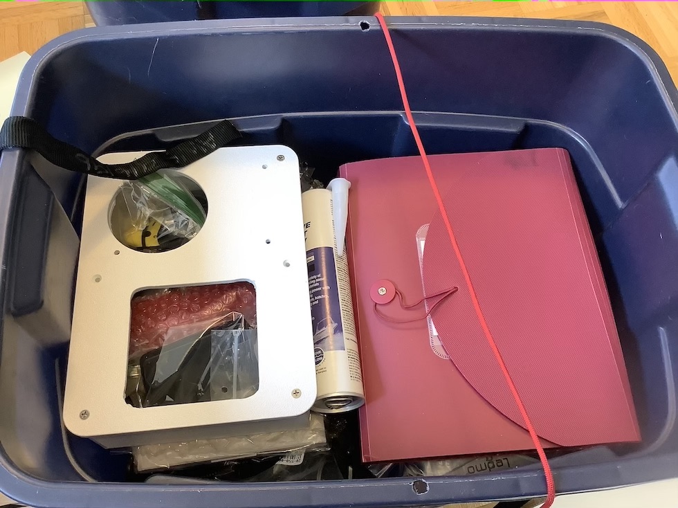 ![]() Box 2 contains the new chartplotter as well as this white box that I designed and had fabricated. The new box will house the new B&G Triton2 display as well as the old Raymarine drive that I hope to incorporate into our new network. The red cord over the box is part of the "quick weigh" system that I made to acquire box weights without having to lift the boxes, a hassle when they're full. ![]() This