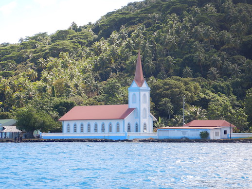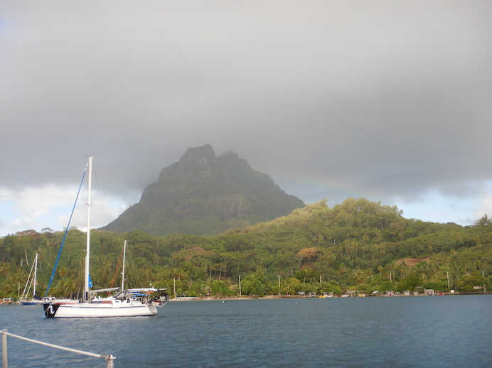 Bora Bora As I've said for years, most people consider Bora Bora the most beautiful island in the South Pacific. Bora Bora boasts a magnificent skyline with the twin volcanic plugs and a gorgeous lagoon. Its height and unique shape made it ideal as an aircraft base in World War 2, allowing pilots to find their home field. And that field, carved from the coral of a motu, with a bit of improvement, is the current airport. Lovely Conni on the morning of our departure from Tapuamu Bay on Taha'a. Although seemingly constructed of modern materials, this is a replica of a traditional Polynesian sailing canoe, a catamaran design. Her sail plan is not traditional, being gaff-rigged main and mizzen. We pass this enormous Catholic church as we enter or depart Tapuamu. This is Nomad IV, a huge boat in the charter trade. You can lease her for a mere US$60,000/week. She has a carbon fiber hull and sails and one of everything. Please take us with you! Nomad IV with her hailing port of Malta. She's under power here. Lovely Conni LOVES to steer! Here, she's at the helm in the Taha'a lagoon. Bora Bora's sea buoy guides us into the lagoon. Were this US waters, this buoy would be green, but international regulations make it red. The actual pass is somewhat complex since it involves a "dog leg" set of turns. We've entered the Bora Bora lagoon and get our first good look at that gorgeous skyline. A circumnavigation of the island shows the mountain changing with the different aspects, sometimes barely recognizable. Our destination is just under that much smaller peak at left. This is Intrepid, a Dashew FPB that I described in a few blogs. At 74-feet, she's spacious and beautifully outfitted, and at US$2.5 million, not inexpensive. Every component was chosen for utility and durability if not for beauty. Even in this squall, that mountain is gorgeous. The boat in the foreground is One Life and its logo is on her bow. Her crew has departed for awhile, probably going home for awhile after being caught in CoVid delays. |
