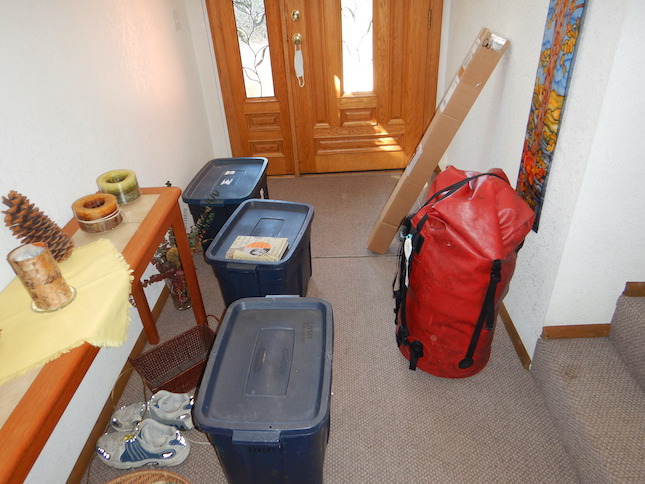 duffle. The cardboard container at right is also going with