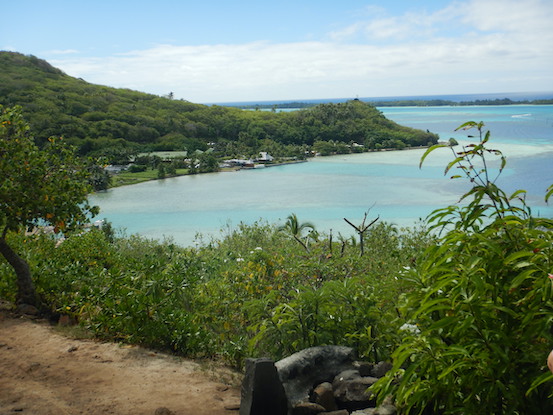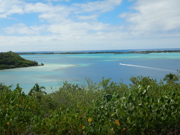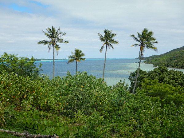 With Raiatea in the background, a resort on the