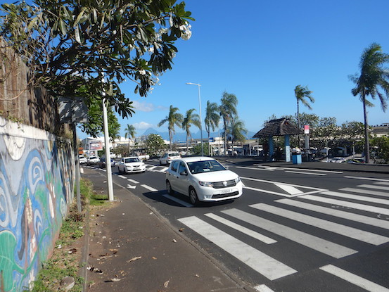Day 1 of Work There's always a Day 1. This was it. I've prefaced the photos of work with a bit of the trip to Raiatea and a few hours in Papeete after landing. . As we awaited our but into downtown Papeete from Fa'a International, I snapped this photo of an early morning in the capital city. From the same bus stop, a photo of the biggest airport in the country, Fa'a International. Yeah, poor lighting, but this is Lovely Conni on the Front du Mer in downtown Papeete. Marina Papeete is behind her. Would you have walked by a shop displaying these gorgeous pain au chocolat? We didn't. Holy smokes... From our seats, I shot this photo of their cook display. Catholicism has many flavors. This wooden Mary holding Jesus is holding a breadfruit. The roots at bottom make it easy to see the origin of the wood. Pay your money, receive your holy water. Interesting concession... This is a station of the cross with a local bent. Va'as, local outrigger canoes carry the saints here. It's a miniature coconut, husk and nut! I saw it and could not imagine what it was. It's not difficult to see where this culture