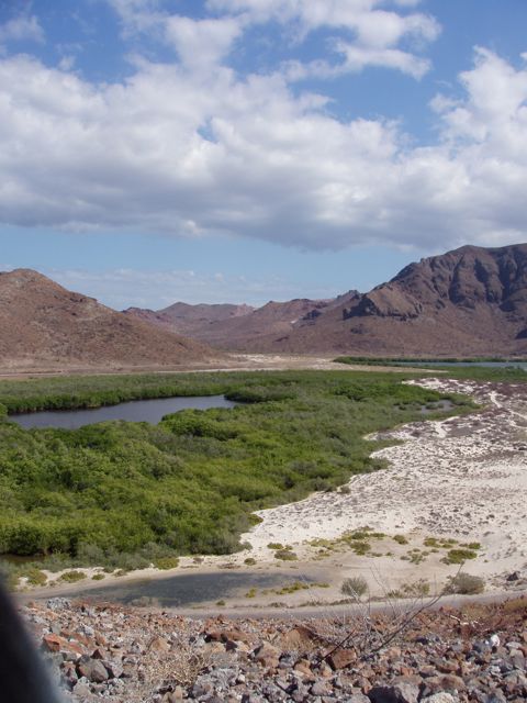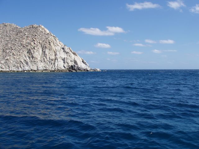 The rock entrance to Bahia Los Frailes. This rock outcropping provided a bit of protection from the heavy North wind blowing from the US "Four Corners" area.