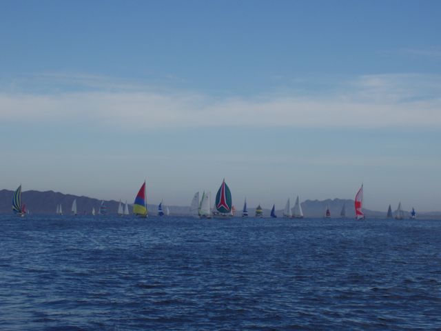 The fleet leaves Bahia de Tortugas, spinnakers flying.