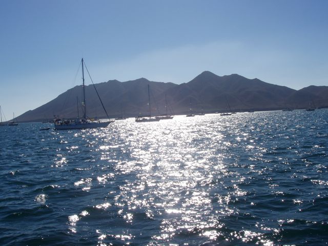 Bahia Santa Maria. Note the dust on our Bimini cover. Wind carries the Baja dust and it lands everywhere.
