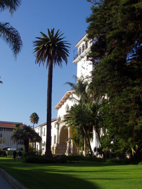 The entrance of the Santa Barbara Courthouse building.