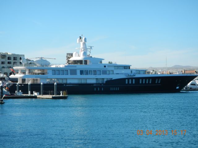 This is how the other half travels. The motor yacht Air is 81 m, 265.7-ft long and is owned by an Italian candy magnate. That's a helicopter on her stern.