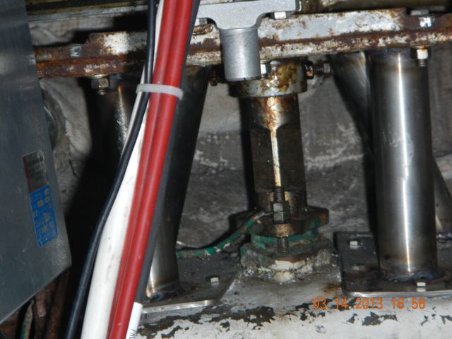 Our new rudder cage! He bolted the stainless steel plates to the hull and welded the legs "in situ". Nice work and very strong. No more rust!