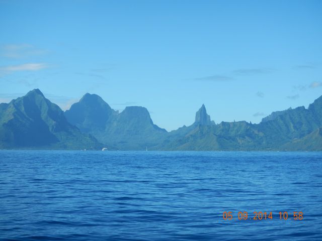 Moorea looms as we approach Tahiti. Moorea is the sister island within Tahiti's coral reef.