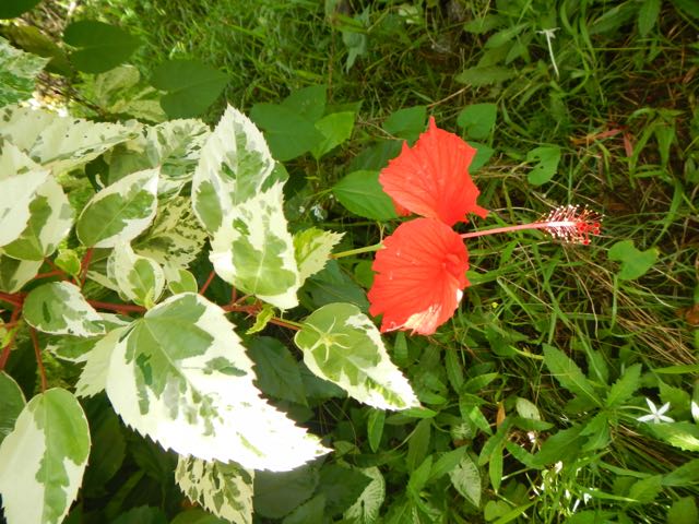 One sometimes wonders at the vibrant colors that the locals wear, as seen in this wash out to dry, until one sees the incredible flowers that grow everywhere.