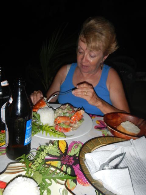 There are two restaurants in the Society Islands that offer Tahitian crab and Conni knew that this was one of them. To our surprise and delight, they were serving it that evening. It's a much larger crab that we had anticipated.