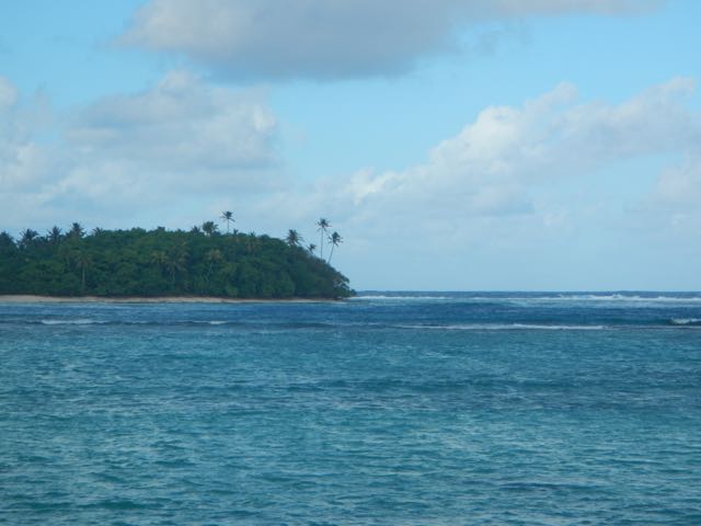 This is the best photo I have of the astounding color change between the shallow and deep water between us and the Pacific. You can just see the breakers pounding on the outside reef.