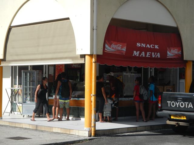 As we drove around Uturoa yesterday, we came upon this very popular hangout, the "Welcome Snack Bar", Maeva meaning, "welcome" in Tahitian.