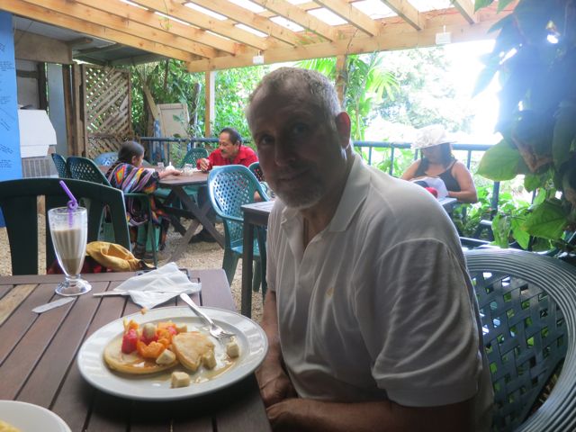 John enjoys a meal at the Tropicana Cafe in Vava'u.