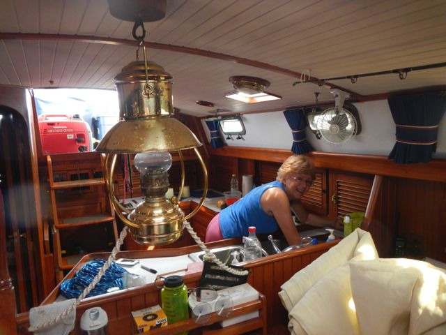 The ever-present Honda chugging in the background, Conni stows food and supplies.