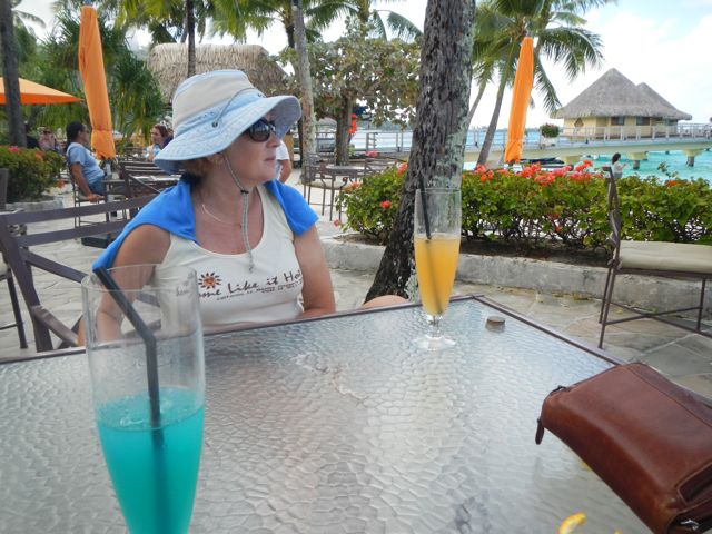 This is a typical scene: Conni and me on computers in the Bora Bora Yacht Club.