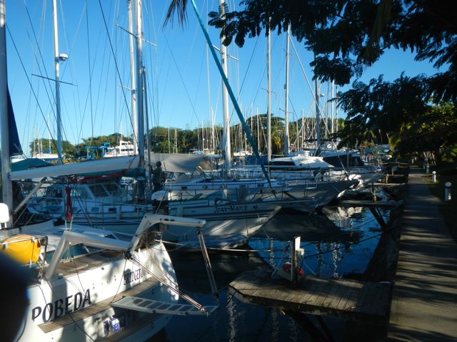 I never get tired of looking at the boats in the marina. Pobeda has a hammer and sickle on her bow. What's up with that?